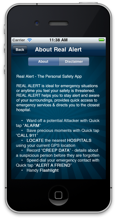 This app is designed to help you stay alert and aware of your surroundings & provides quick access to emergency services.